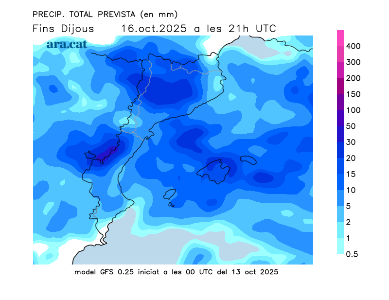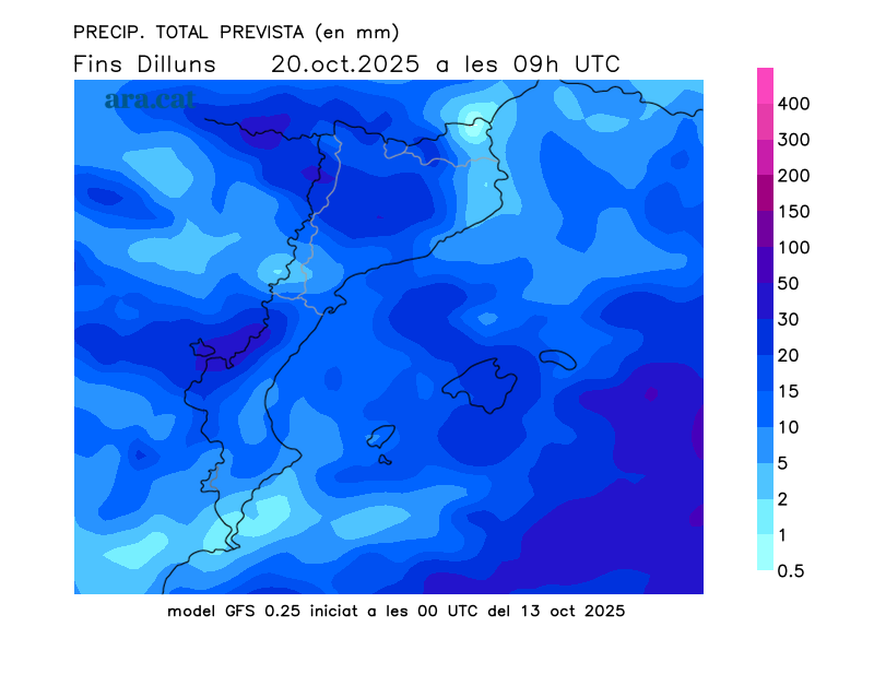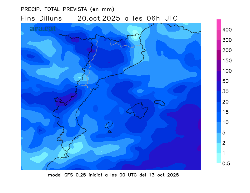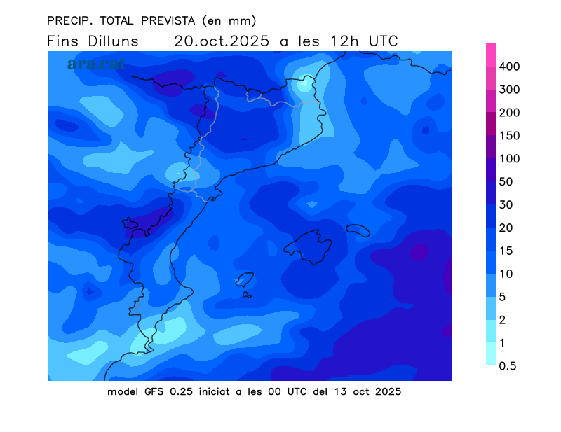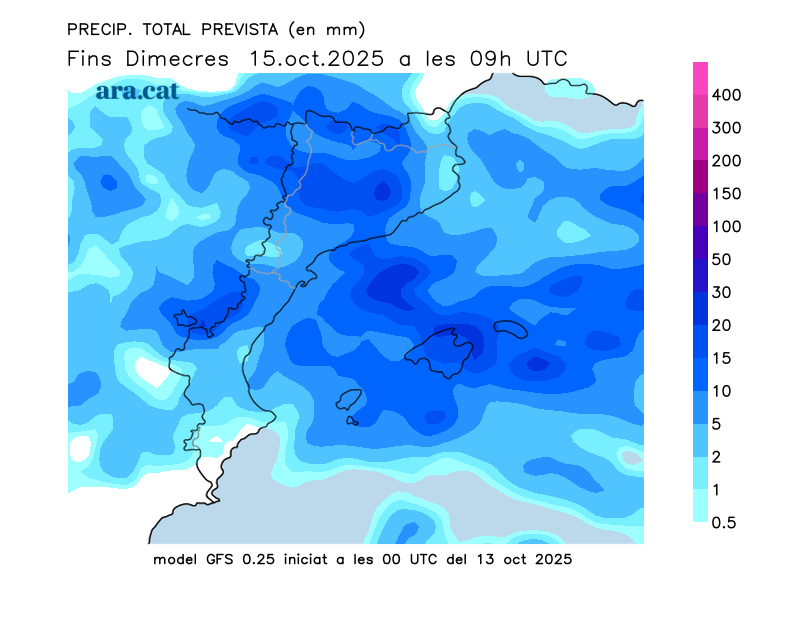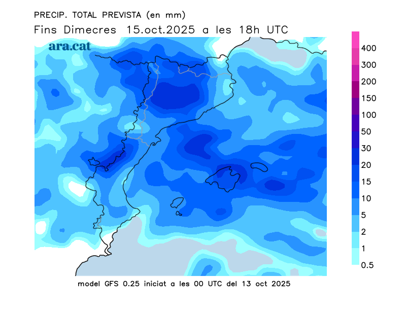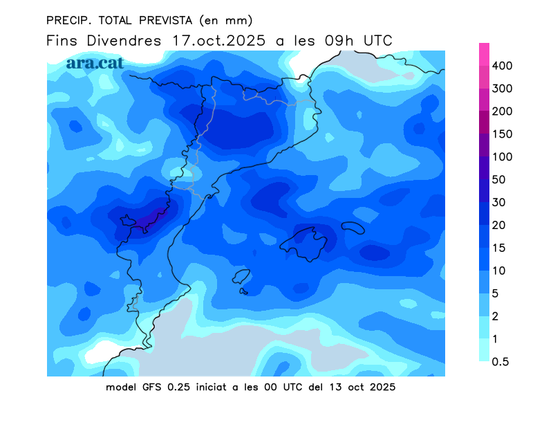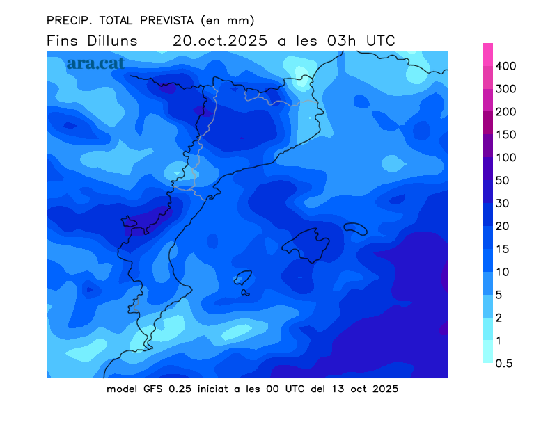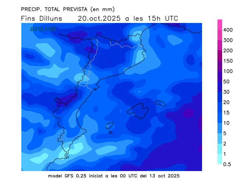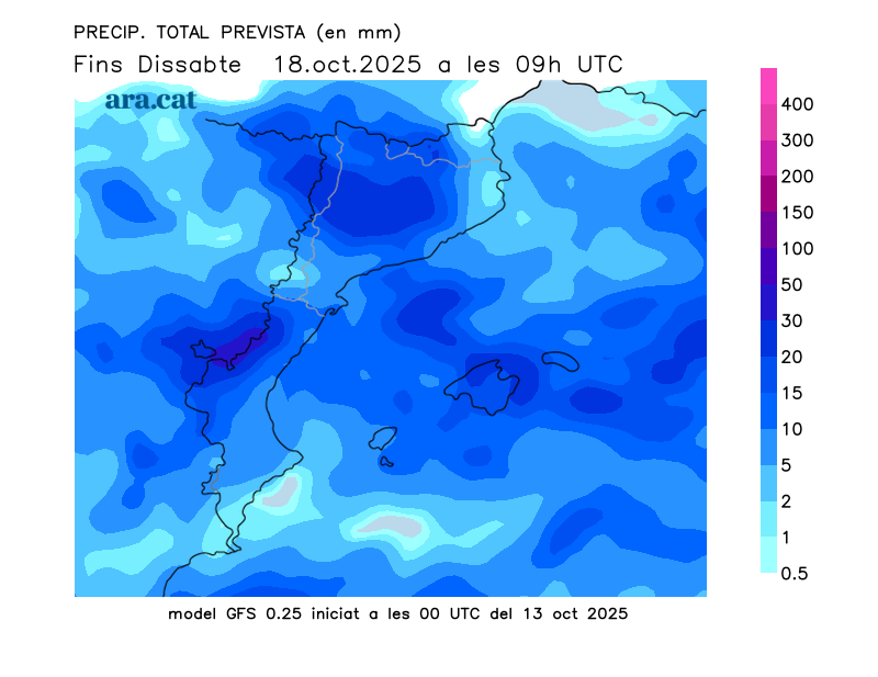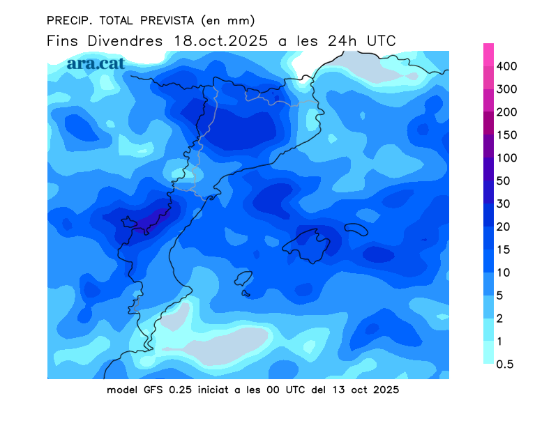 Mapes elaborats a partir dels models de pronòstic GFS (resolució de 0.25º) i GEFS. A l’hivern la nostra hora oficial és UTC+1, a l’estiu és UTC+2.