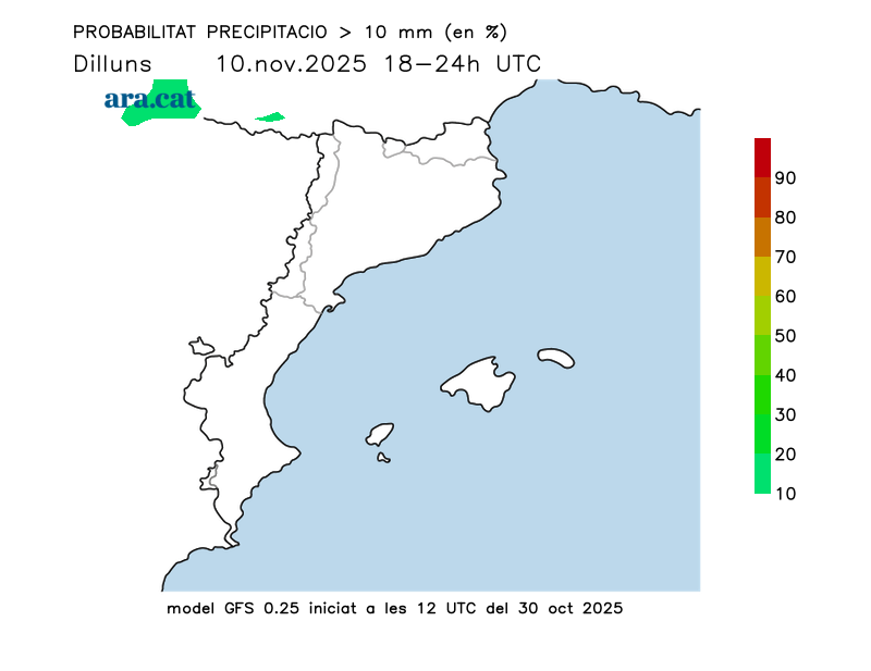 Probabilitat de precipitació > 10 l/m²