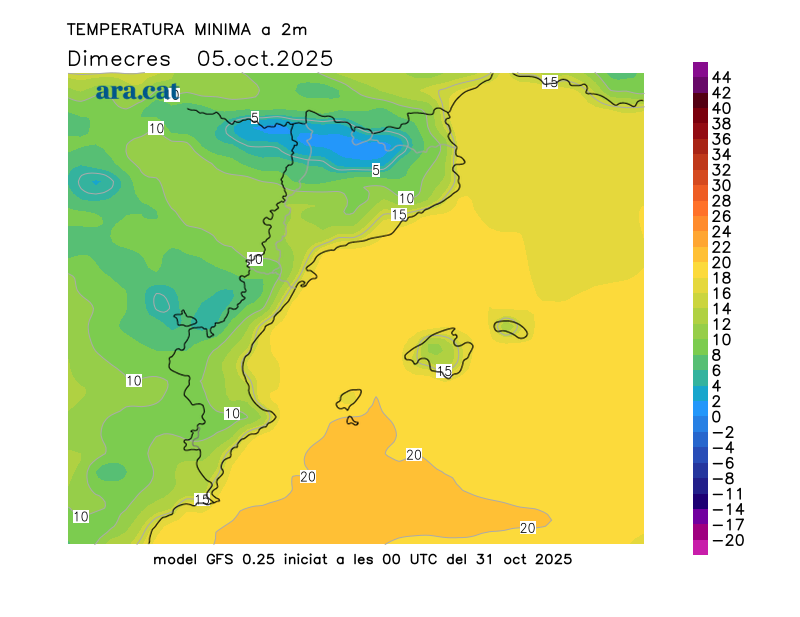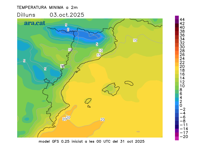 Mapes elaborats a partir dels models de pronòstic GFS (resolució de 0.25º) i GEFS. A l’hivern la nostra hora oficial és UTC+1, a l’estiu és UTC+2.