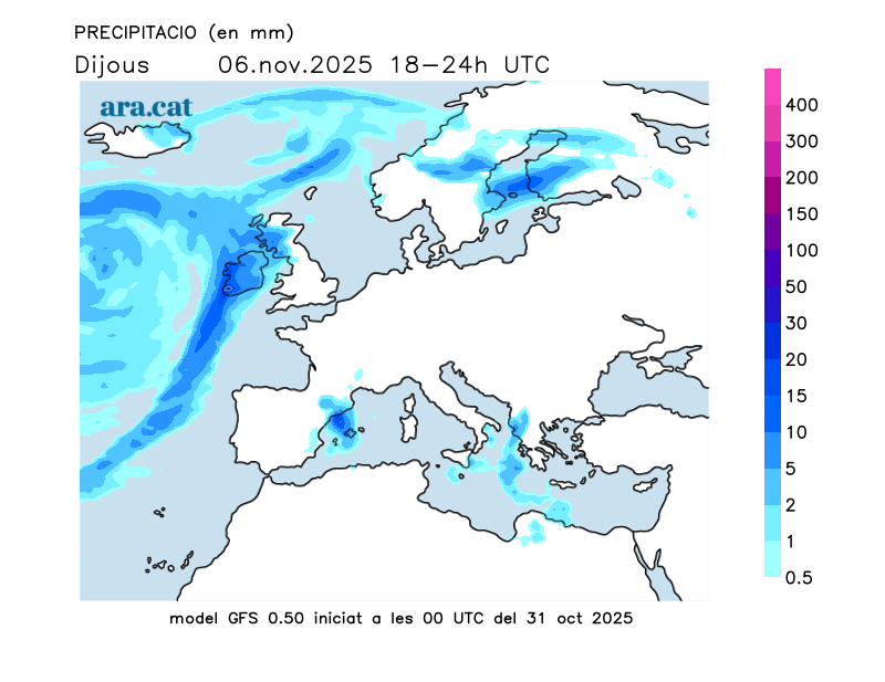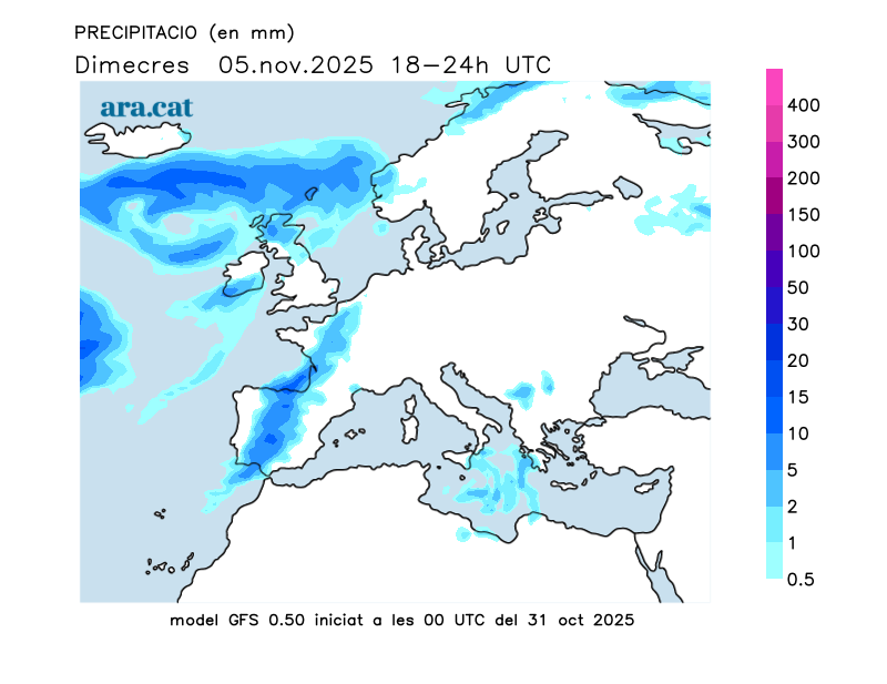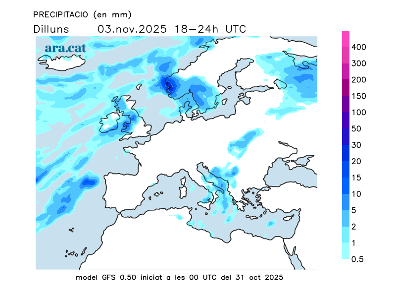Mapes elaborats a partir dels models de pronòstic GFS (resolució de 0.25º) i GEFS. A l’hivern la nostra hora oficial és UTC+1, a l’estiu és UTC+2.