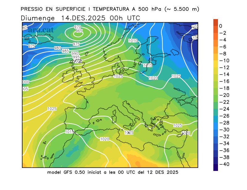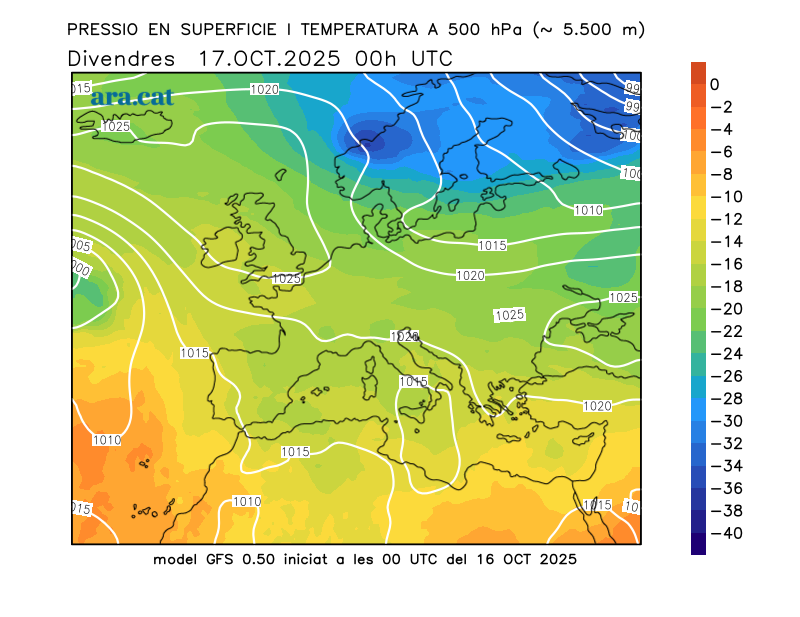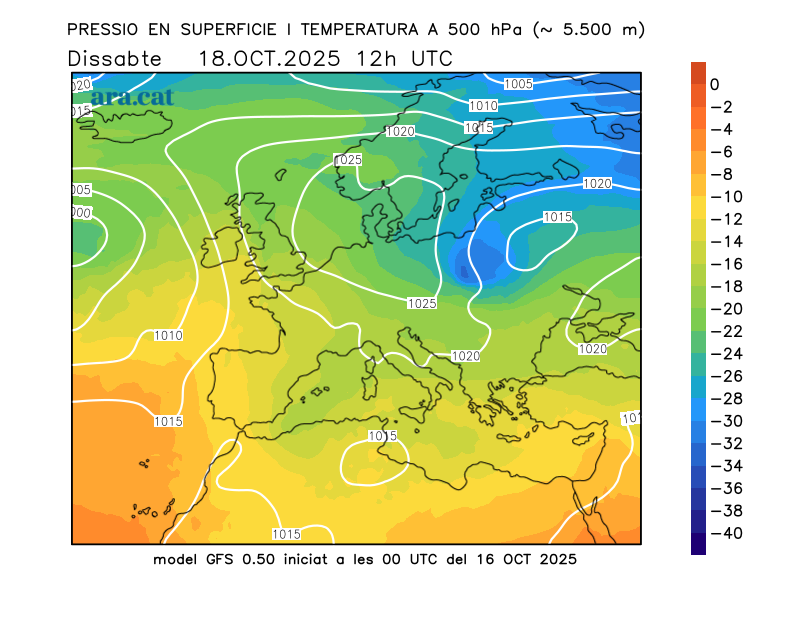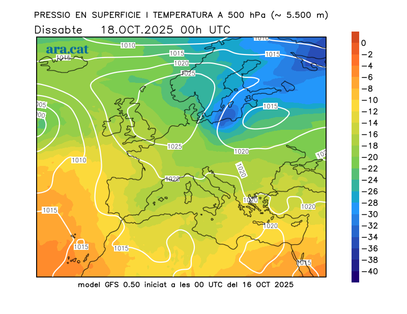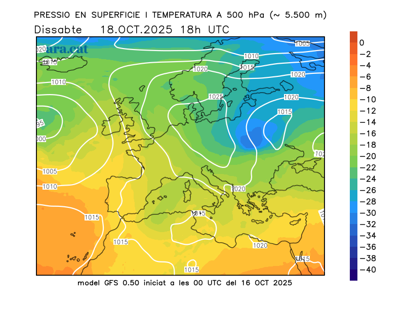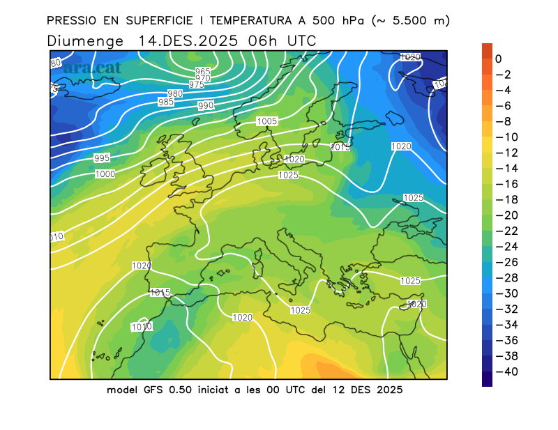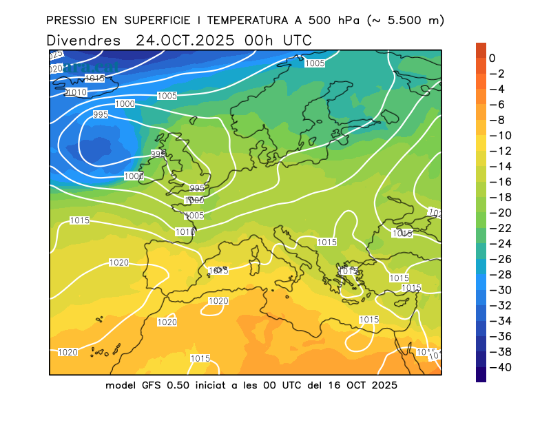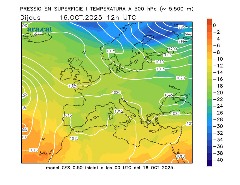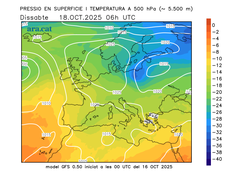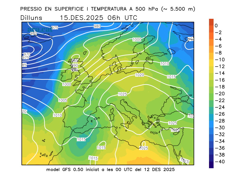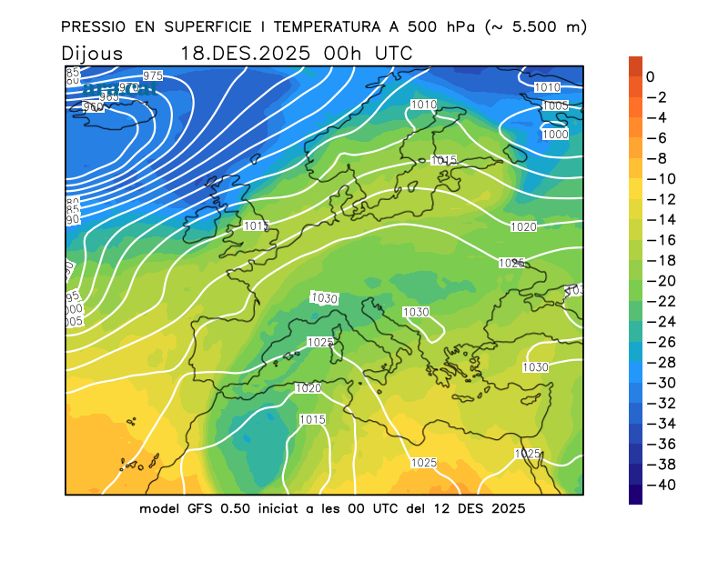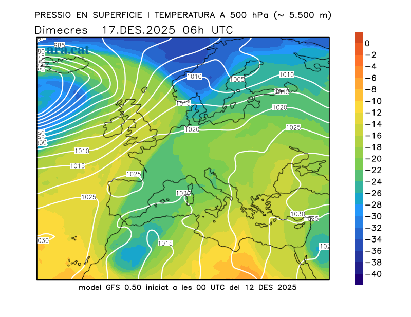 Mapes elaborats a partir dels models de pronòstic GFS (resolució de 0.25º) i GEFS. A l’hivern la nostra hora oficial és UTC+1, a l’estiu és UTC+2.
