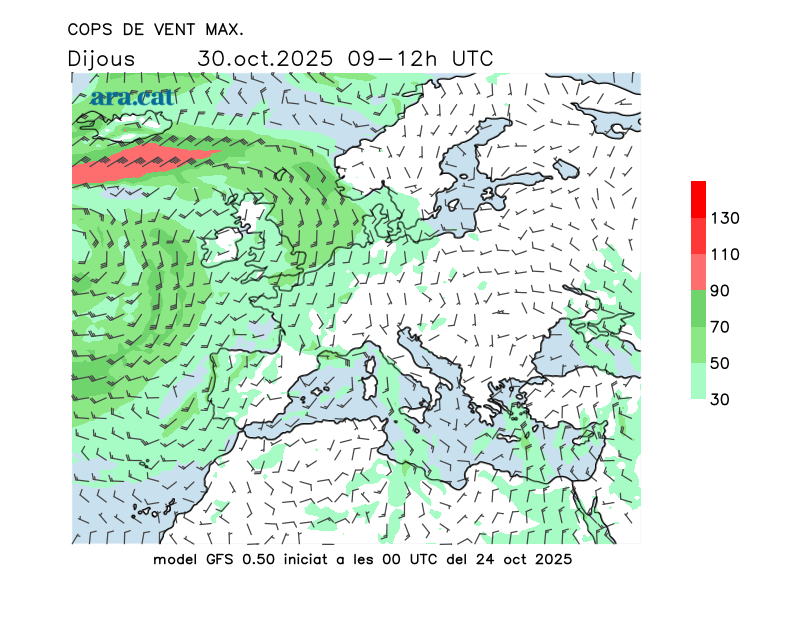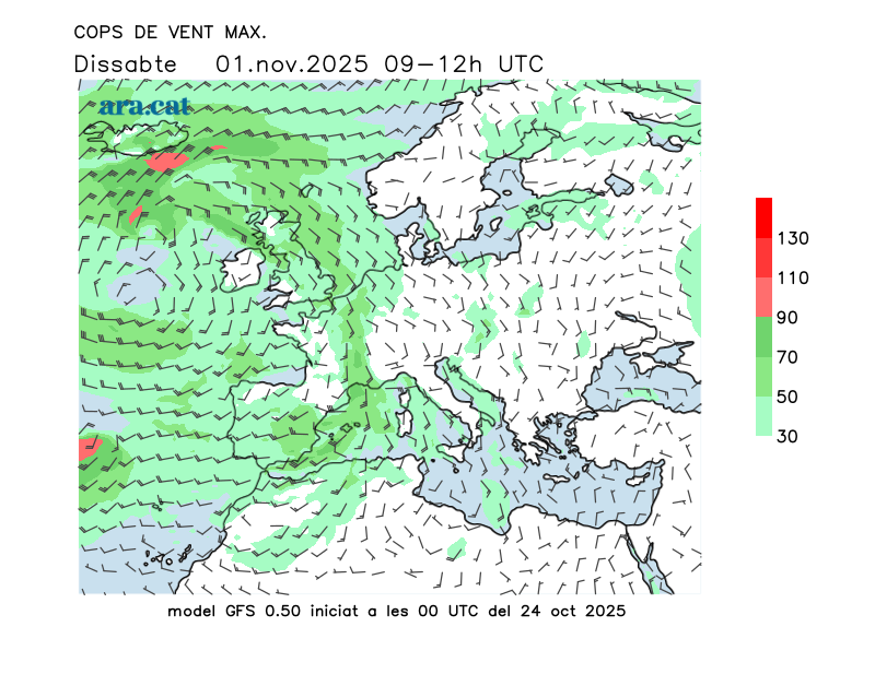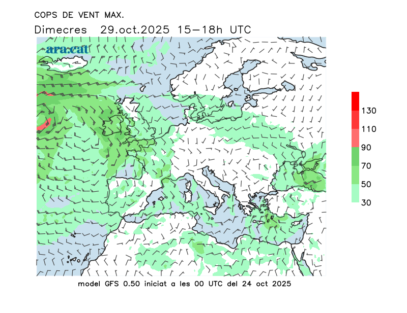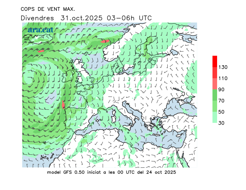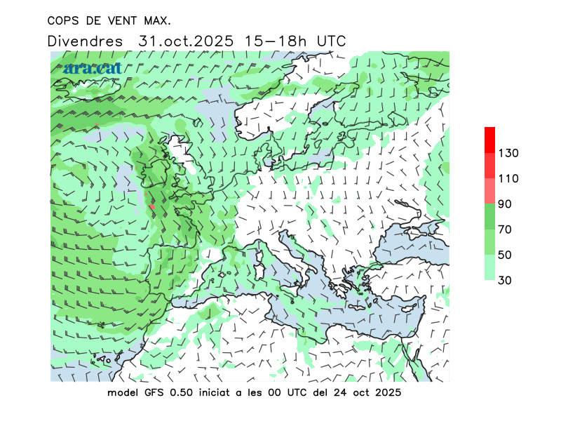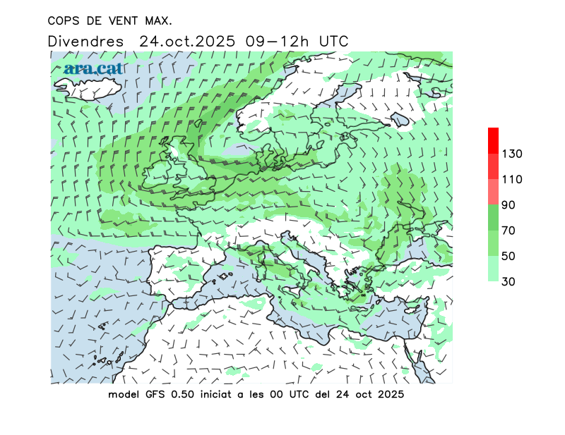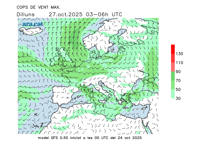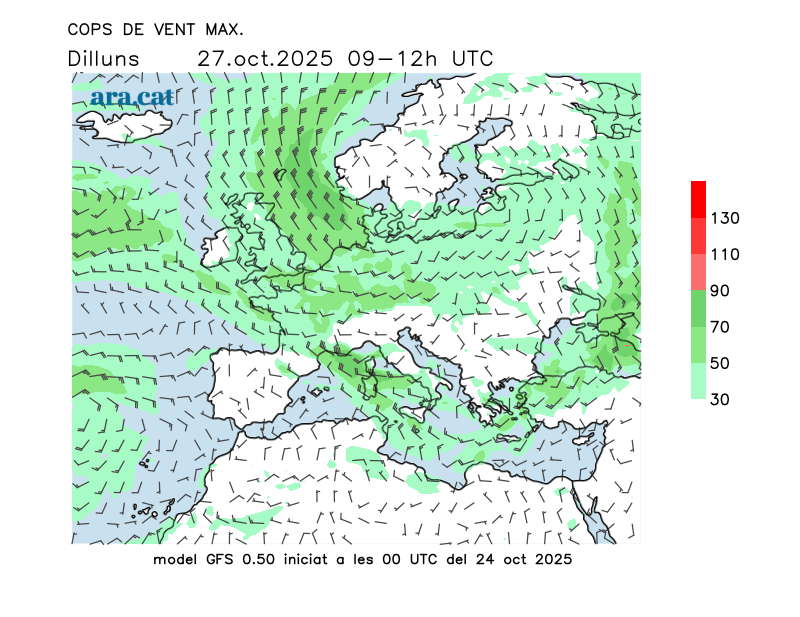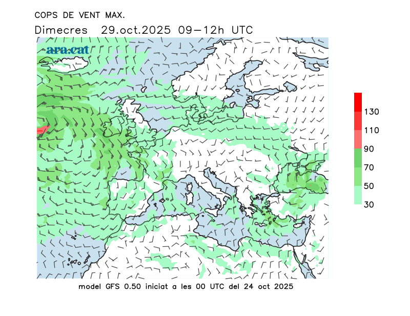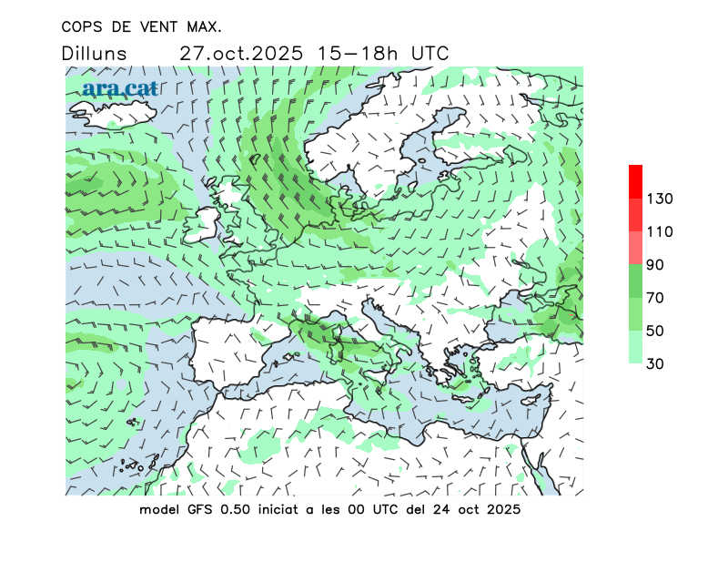Mapes elaborats a partir dels models de pronòstic GFS (resolució de 0.25º) i GEFS. A l’hivern la nostra hora oficial és UTC+1, a l’estiu és UTC+2.