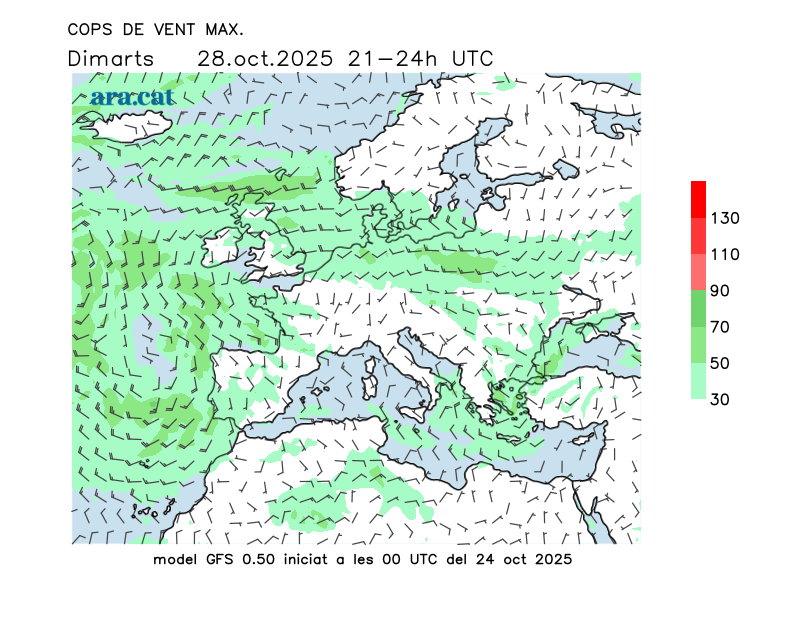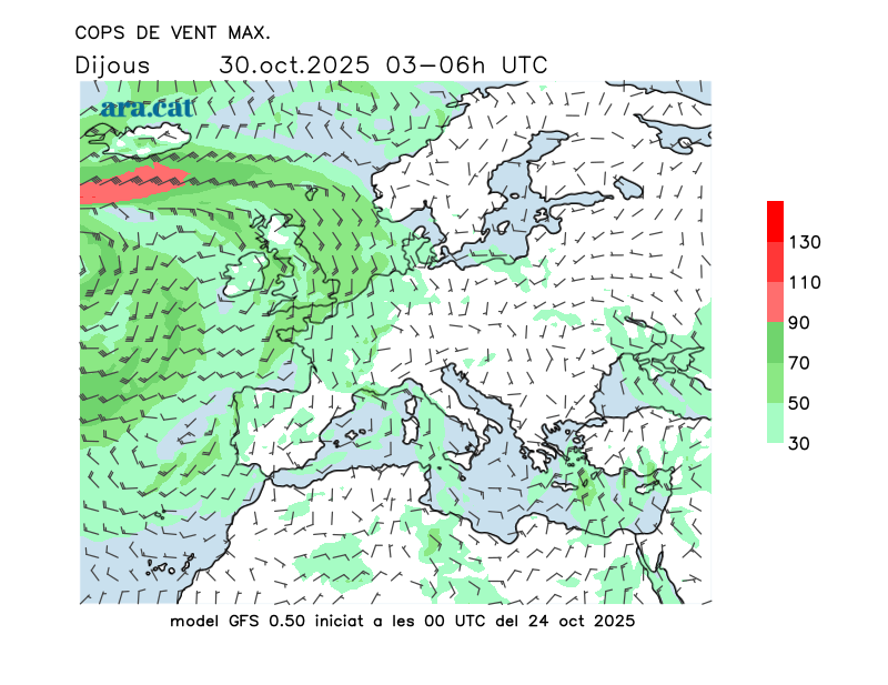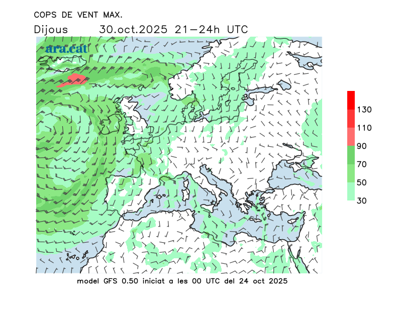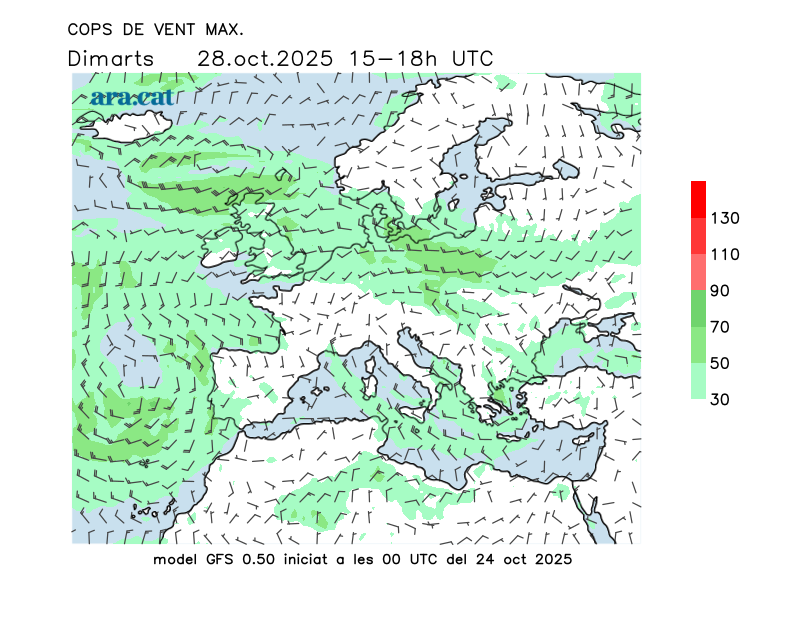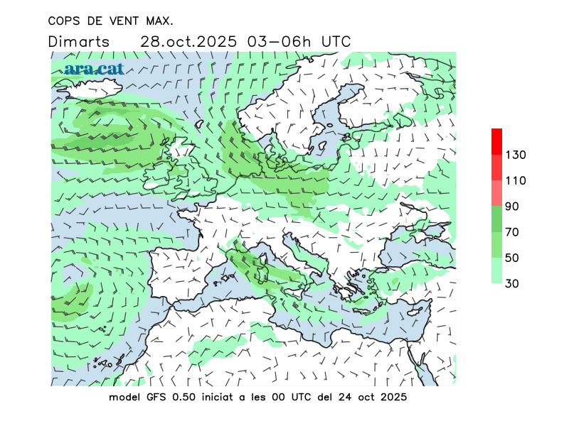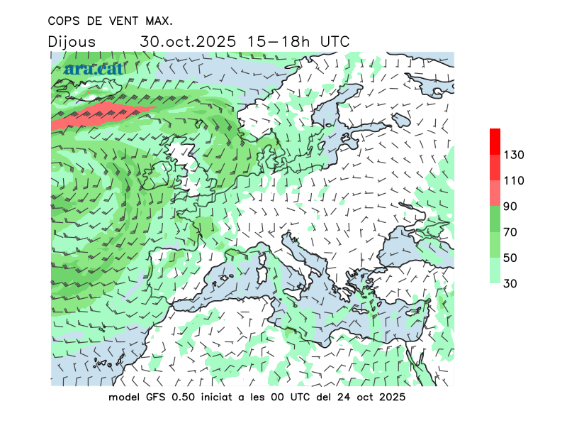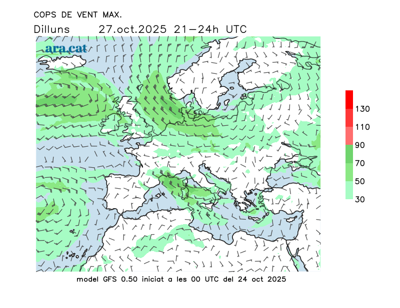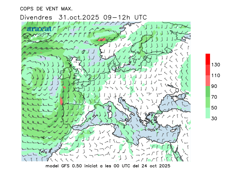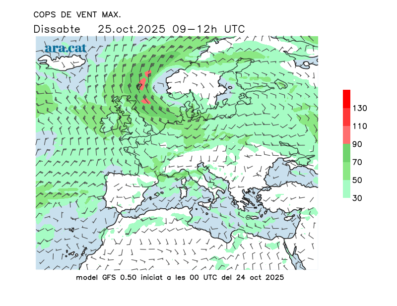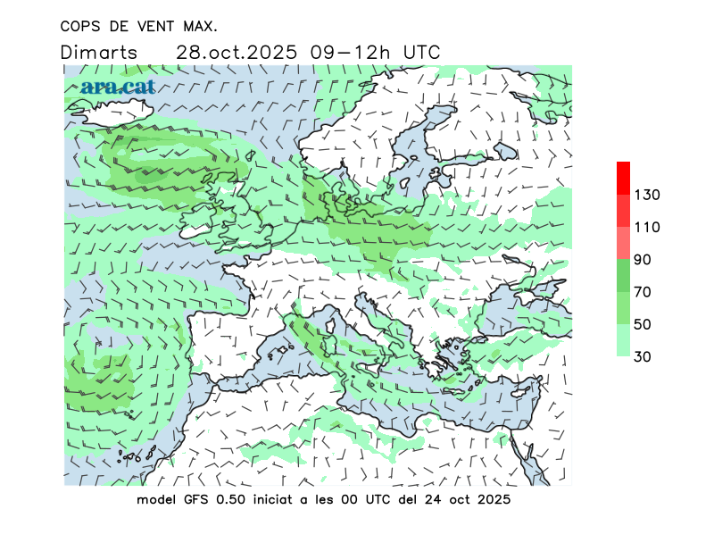 Mapes elaborats a partir dels models de pronòstic GFS (resolució de 0.25º) i GEFS. A l’hivern la nostra hora oficial és UTC+1, a l’estiu és UTC+2.