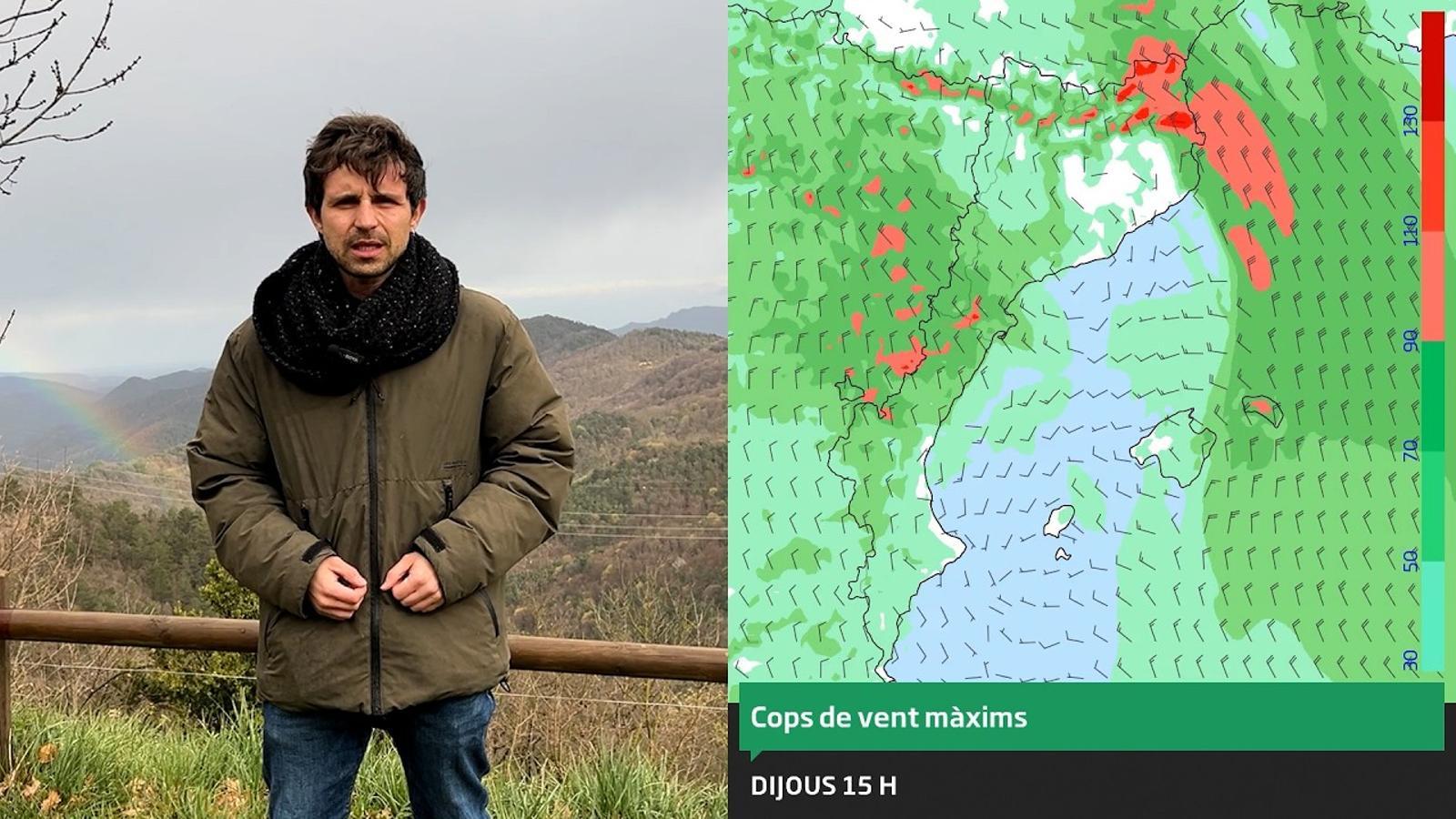 La barra blau cel indica la probabilitat en % que plogui (o nevi) com a mínim una mica (+ de 0,5 mm). La barra més fosca indica la probabilitat que plogui (o nevi) amb ganes (+ de 5 mm).