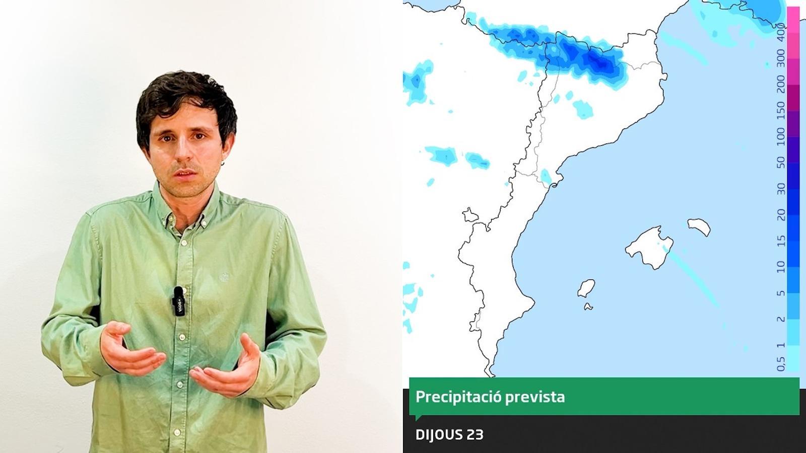 La barra blau cel indica la probabilitat en % que plogui (o nevi) com a mínim una mica (+ de 0,5 mm). La barra més fosca indica la probabilitat que plogui (o nevi) amb ganes (+ de 5 mm).