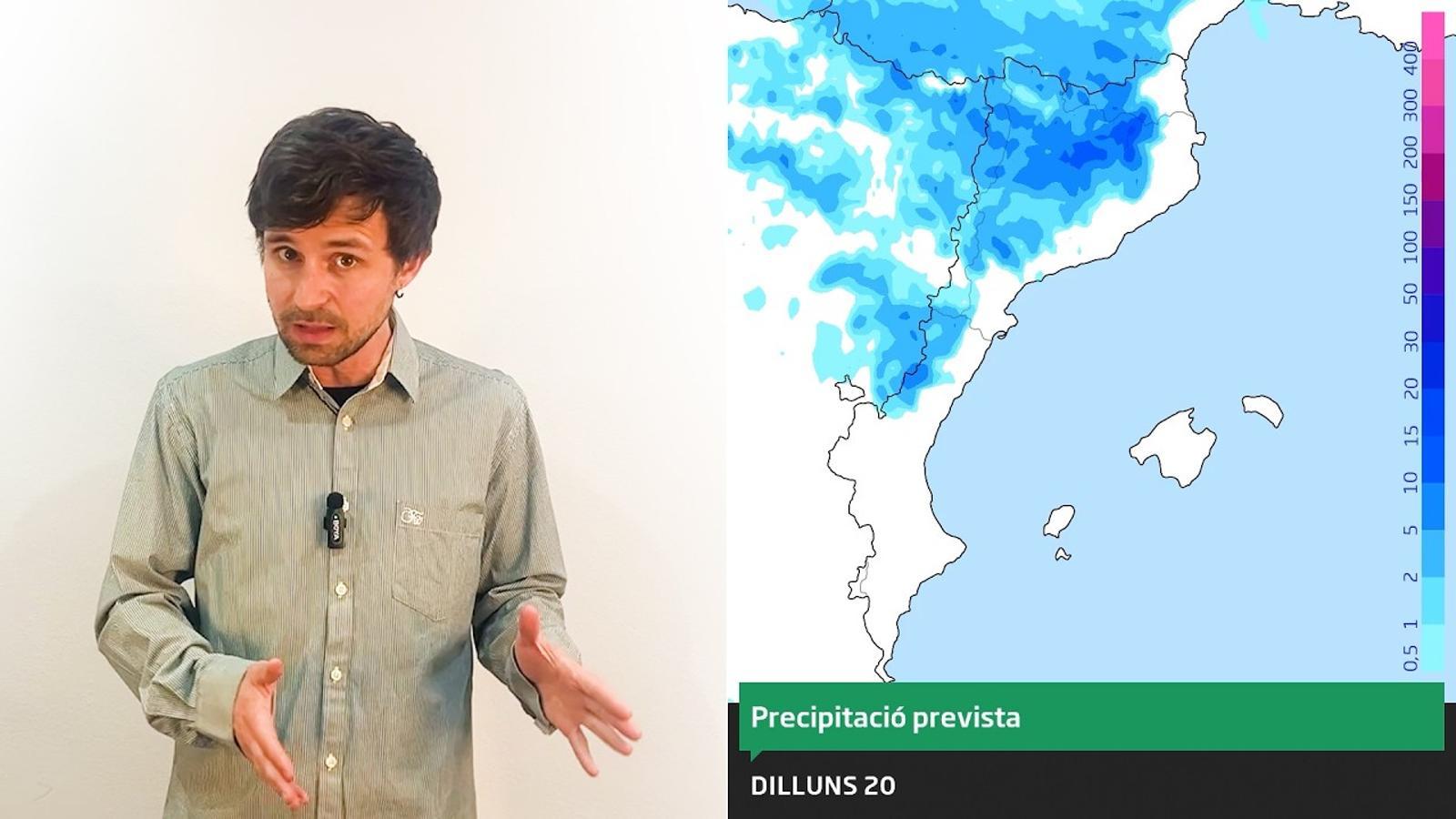 La barra blau cel indica la probabilitat en % que plogui (o nevi) com a mínim una mica (+ de 0,5 mm). La barra més fosca indica la probabilitat que plogui (o nevi) amb ganes (+ de 5 mm).