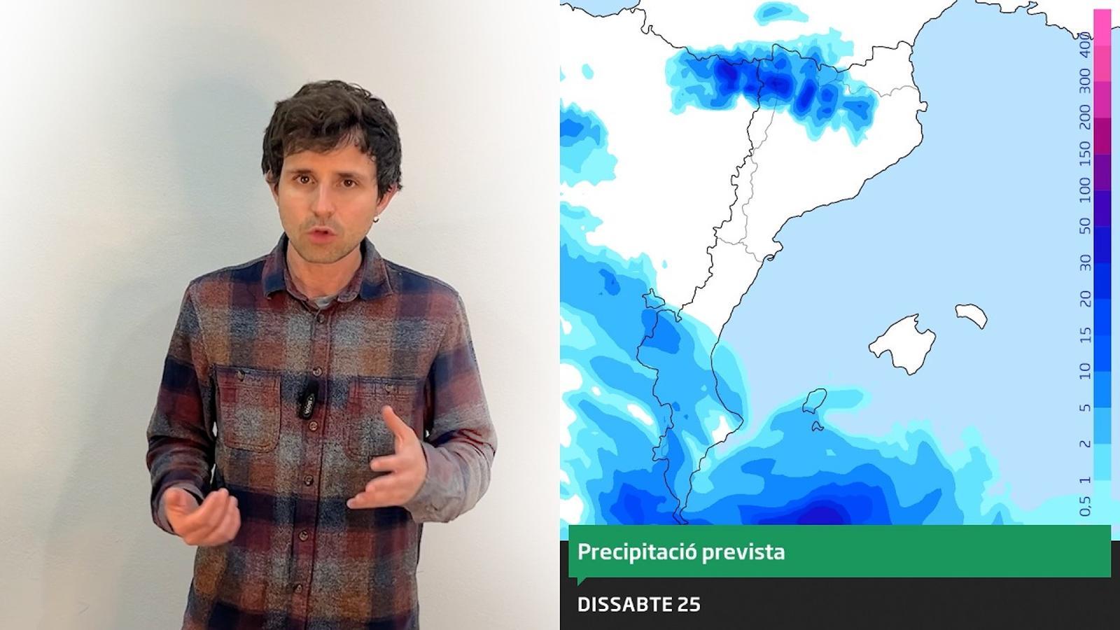 La barra blau cel indica la probabilitat en % que plogui (o nevi) com a mínim una mica (+ de 0,5 mm). La barra més fosca indica la probabilitat que plogui (o nevi) amb ganes (+ de 5 mm).