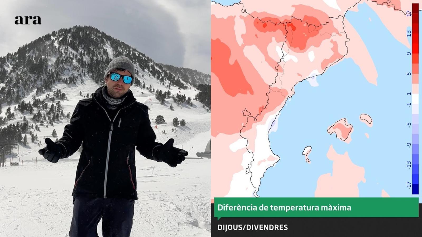 La barra blau cel indica la probabilitat en % que plogui (o nevi) com a mínim una mica (+ de 0,5 mm). La barra més fosca indica la probabilitat que plogui (o nevi) amb ganes (+ de 5 mm).